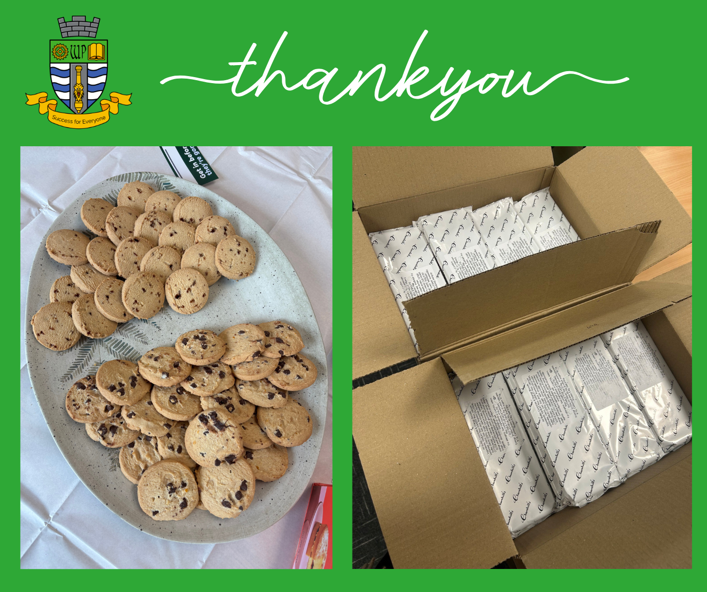 A special thank‑you to our friends at Churchill's Confectionery Ltd for their generous biscuit donation for our event today. They kindly sent one box of chocolate and orange biscuits and shortbread with toffee pieces.