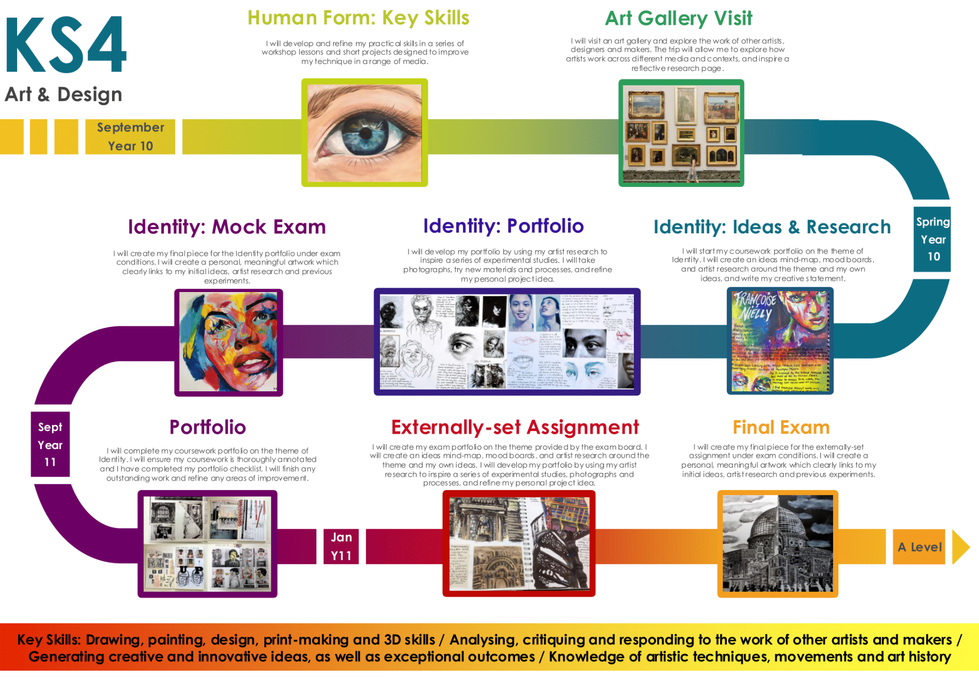 • 60% portfolio: Starting in Year 10, including a body of practical work and final piece