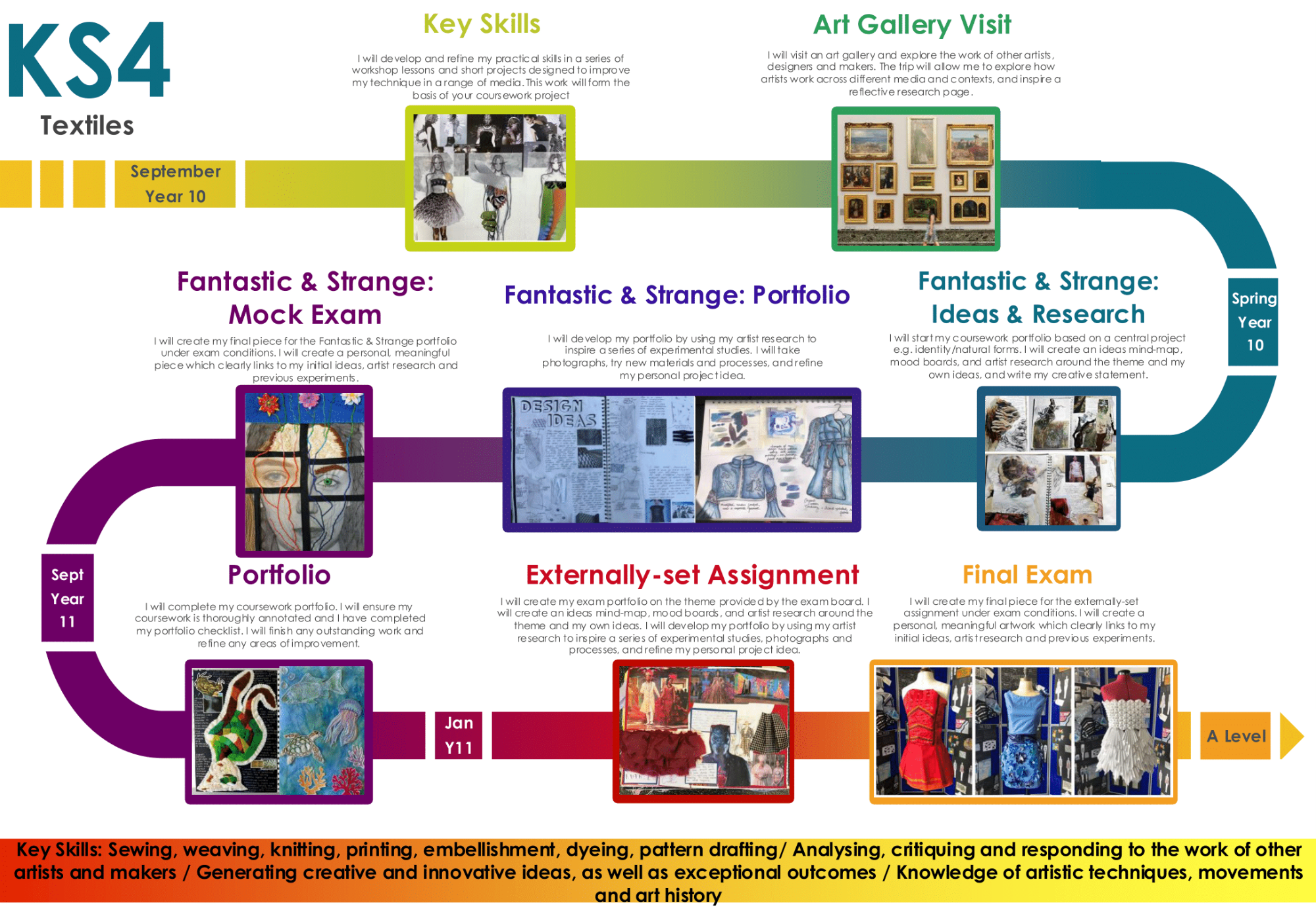 • 40% externally set assignment: Beginning in January Year 11, including a body of work and a final piece created under exam conditions (10 hours)